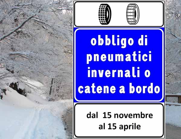 L'ente provinciale prevede inoltre che tale obbligo ha validità in caso di precipitazioni nevose o formazione di ghiaccio che dovessero verificarsi anche al di fuori del periodo previsto sopra.